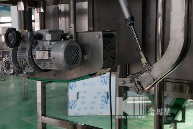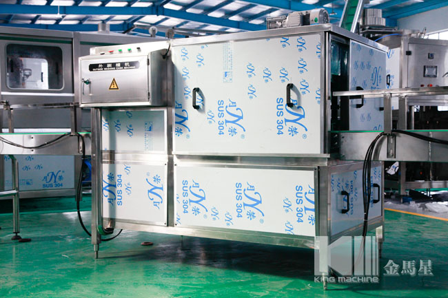 本灌裝生產線專用于3-5加侖桶裝水的灌裝,型號包括了QGF-100,QGF-240,QGF-300,QGF-450,QGF-600,QGF-900,QGF-1200。合消毒、沖洗、灌裝、壓蓋四為一體。沖洗機采用了多種洗液以及消毒液對瓶子進行清洗以及消毒,消毒液能夠循環使用。瓶蓋會在清洗和消毒后運至旋蓋機自動進行旋蓋。本產品功能齊全,涵蓋了清洗、消毒、灌裝、旋蓋、計數等功能,高度自動化,實為飲料生產廠家理想的優選設備。