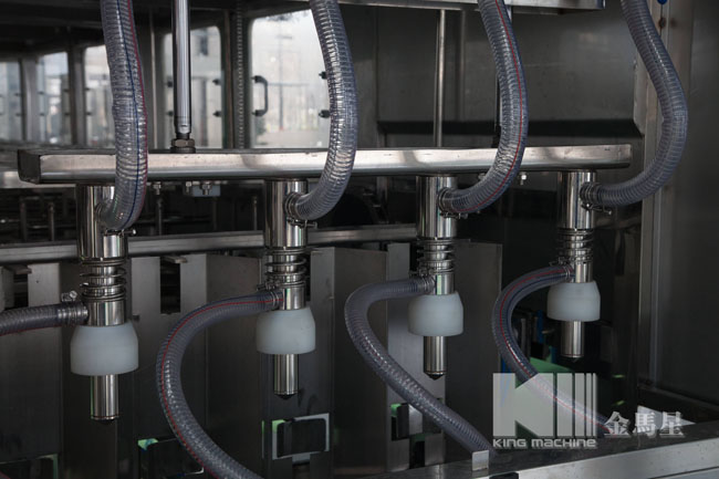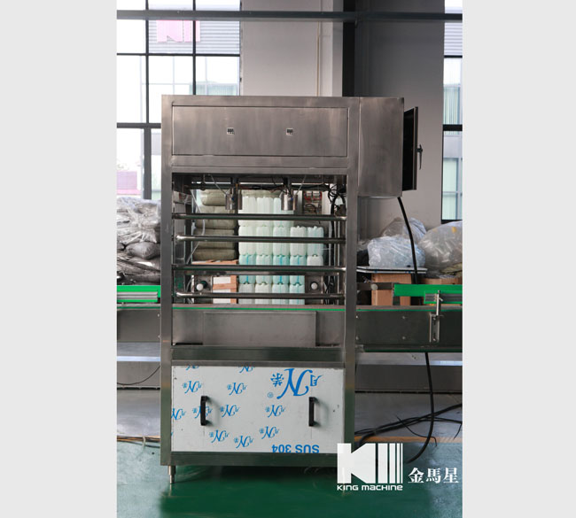 本設備集合了消毒、沖洗、灌裝和壓蓋,合四為一,能夠實現全自動桶裝水旋蓋。沖瓶機使用多種沖品液和消毒液,以保證獲得沖瓶和殺菌效果。消毒液可以循環使用,節省消耗。