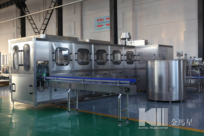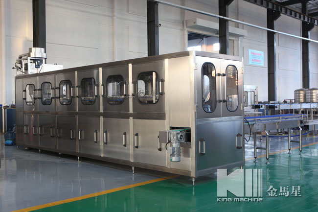 本灌裝生產線專用于3-5加侖桶裝水的灌裝,型號包括了QGF-100,QGF-240,QGF-300,QGF-450,QGF-600,QGF-900,QGF-1200。合消毒、沖洗、灌裝、壓蓋四為一體。沖洗機采用了多種洗液以及消毒液對瓶子進行清洗以及消毒,消毒液能夠循環使用。瓶蓋會在清洗和消毒后運至旋蓋機自動進行旋蓋。本產品功能齊全,涵蓋了清洗、消毒、灌裝、旋蓋、計數等功能,高度自動化,實為飲料生產廠家理想的優選設備。