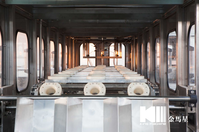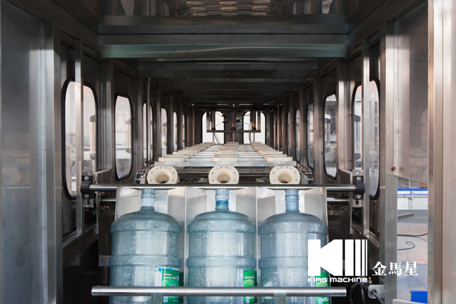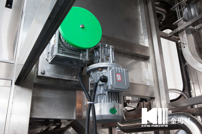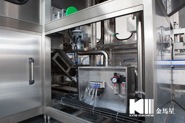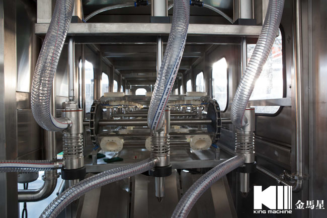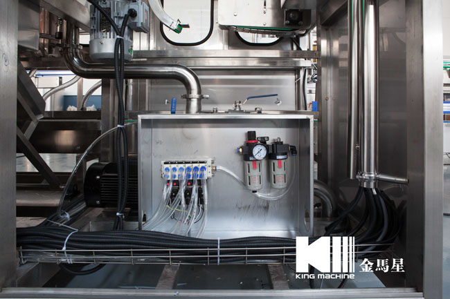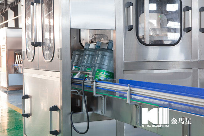 本設備集合了消毒、沖洗、灌裝和壓蓋,合四為一,能夠實現全自動桶裝水旋蓋。沖瓶機使用多種沖品液和消毒液,以保證獲得沖瓶和殺菌效果。消毒液可以循環使用,節省消耗。