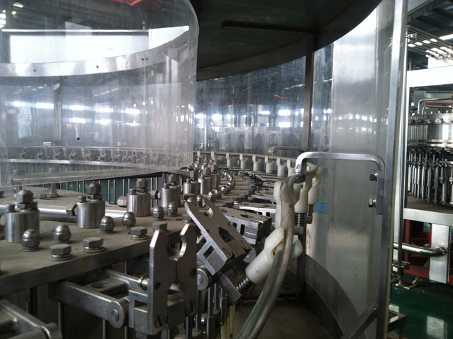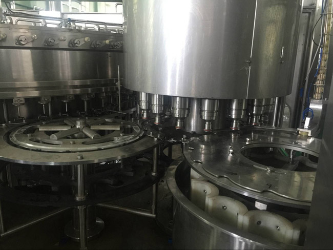 飲用水灌裝機(jī)集沖洗、灌裝、旋蓋于一體,全過(guò)程自動(dòng)化運(yùn)行,主要適用礦泉水、純凈水等不含氣飲料的沖瓶、灌裝、封口連續(xù)作業(yè)。本機(jī)大部分電器系統(tǒng)零件均采用國(guó)外優(yōu)良產(chǎn)品,所有與液料接觸的地方均采用優(yōu)質(zhì)的不銹鋼材料制作,主關(guān)鍵部件采用數(shù)控機(jī)床精密加工, 整機(jī)光電檢測(cè)各部件的運(yùn)行狀況,無(wú)瓶不灌裝,無(wú)瓶不送蓋,自動(dòng)化程度高,操作簡(jiǎn)易,具有耐磨、穩(wěn)定、故障率低等特點(diǎn),產(chǎn)品質(zhì)量處于行業(yè)前列,是新老飲料投資者的選擇。