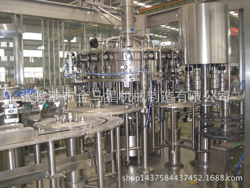 本設(shè)備主要用于含汽飲料灌裝,包含沖瓶灌裝和旋蓋三大主要功能。本設(shè)備實(shí)現(xiàn)全自動運(yùn)行,能夠適應(yīng)PET瓶含汽果汁、含汽礦泉水及可樂與雪碧等灌裝。瓶型適應(yīng)性強(qiáng),更換瓶型時(shí)操作簡單快捷。灌裝方案中采用了等壓灌裝原理,灌裝快速穩(wěn)定,液位準(zhǔn)確,含汽量足。與同類設(shè)備相比,本公司產(chǎn)品產(chǎn)量高,運(yùn)行穩(wěn)定安全,故障率低,自動化長度高,價(jià)格經(jīng)濟(jì)實(shí)惠。全機(jī)采用優(yōu)良可編程控制器(PLC)來控制設(shè)備的自動運(yùn)行,送瓶系統(tǒng)由變頻器改變速度,更加穩(wěn)定可靠。每個部分都有光電單元進(jìn)行監(jiān)測,所以更加自動化,操作更加便捷。在此基礎(chǔ)上,更換灌裝單元即可改變灌裝模式到低壓真空灌裝和等壓灌裝等。本設(shè)備是飲料企業(yè)的選擇。