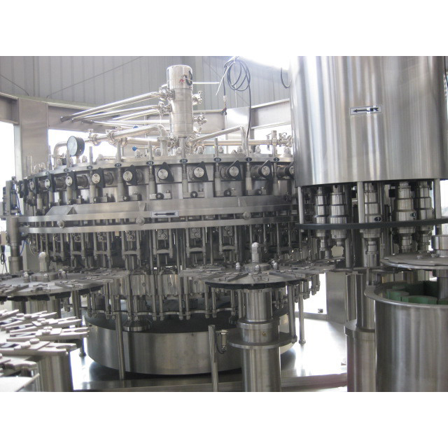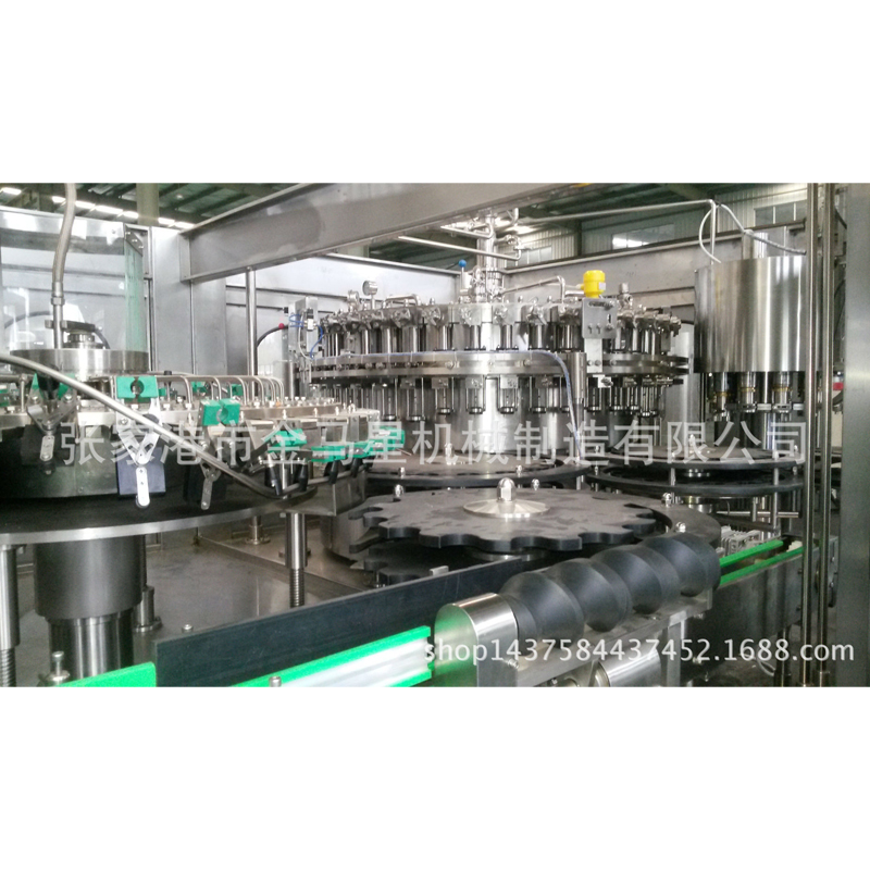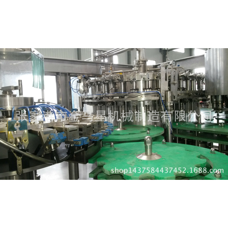 本設備主要用于含汽飲料灌裝,包含沖瓶灌裝和旋蓋三大主要功能。本設備實現全自動運行,能夠適應PET瓶含汽果汁、含汽礦泉水及可樂與雪碧等灌裝。瓶型適應性強,更換瓶型時操作簡單快捷。灌裝方案中采用了等壓灌裝原理,灌裝快速穩定,液位準確,含汽量足。與同類設備相比,本公司產品產量高,運行穩定安全,故障率低,自動化長度高,價格經濟實惠。全機采用優良可編程控制器(PLC)來控制設備的自動運行,送瓶系統由變頻器改變速度,更加穩定可靠。每個部分都有光電單元進行監測,所以更加自動化,操作更加便捷。在此基礎上,更換灌裝單元即可改變灌裝模式到低壓真空灌裝和等壓灌裝等。本設備是飲料企業的選擇。